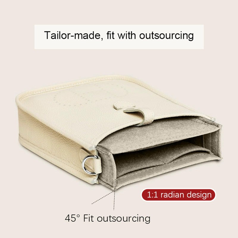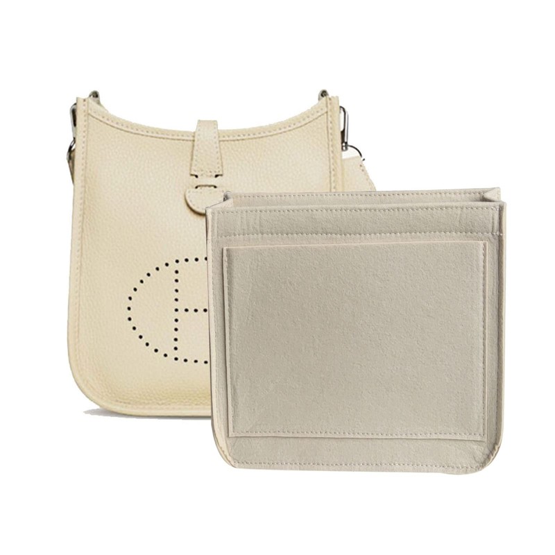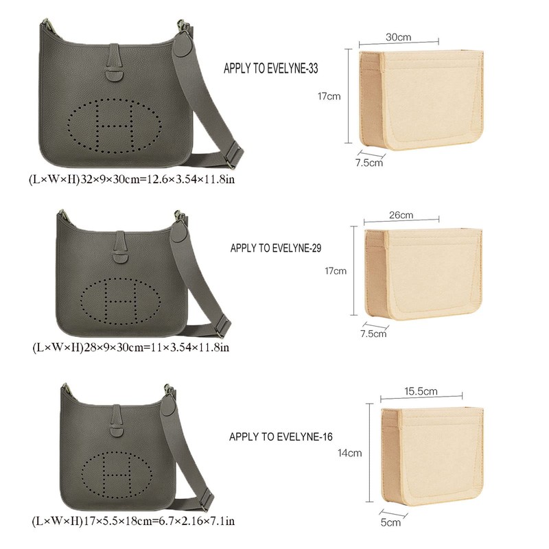 - Evelyne bag organizer storage bag is very suitable for Hermes Evelyne III tpm pm gm bag. The insert is made of microfiber material, which better matches the luxurious shoulder bag, making your bag more practical and keeping the upright shape perfect and fashionable.