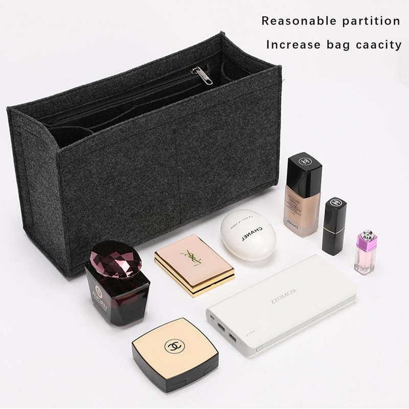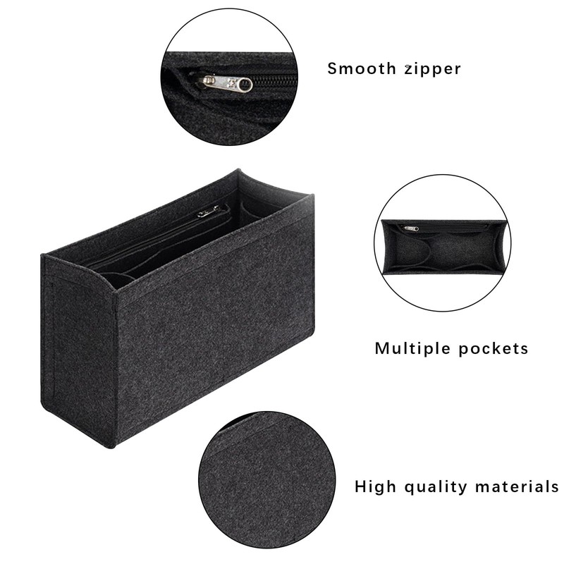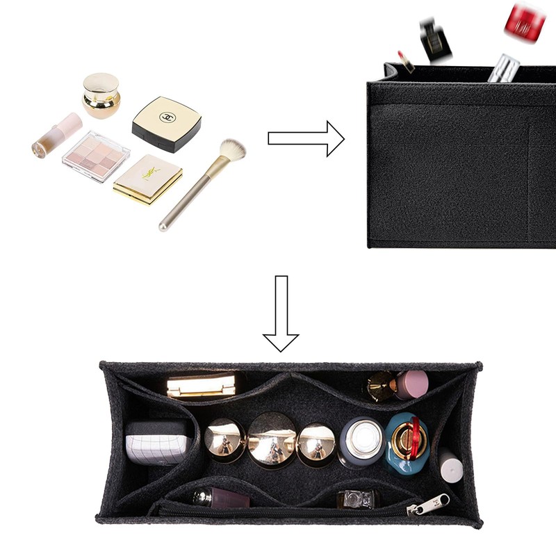 - Felt insert bag organizer bid farewell to messy bags,and prepare enough pockets to store messy makeup, organized and keep Purse clean and tidy. It can also be used as a container for household items.Pack up small things on the desktop