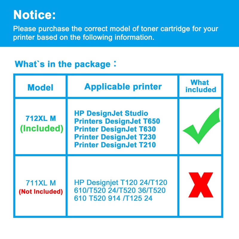 - 【Package Content】Includes 1 Ink Catridges, 712XL Magenta x 1.
