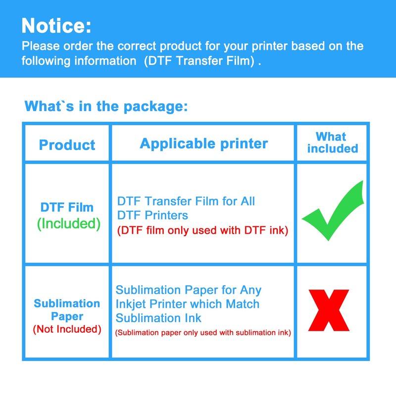 - 【Easy to Use】Are you still worries about half-printing or paper jamming? NO WORRIES! LCL provides a lot of magical positioning stickers in the package to help you print successfully without any frustrating problems. LCL DTF transfer film is easy to use, and please refer to the Video next to the product picture.