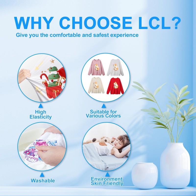- 【Washable & No fading】 LCL DTF transfer film use the high-quality materials which can make the pattern stretchable and long-lasting. The pattern transferred from LCL DTF film can withstand multiple washes, without fading and cracking.