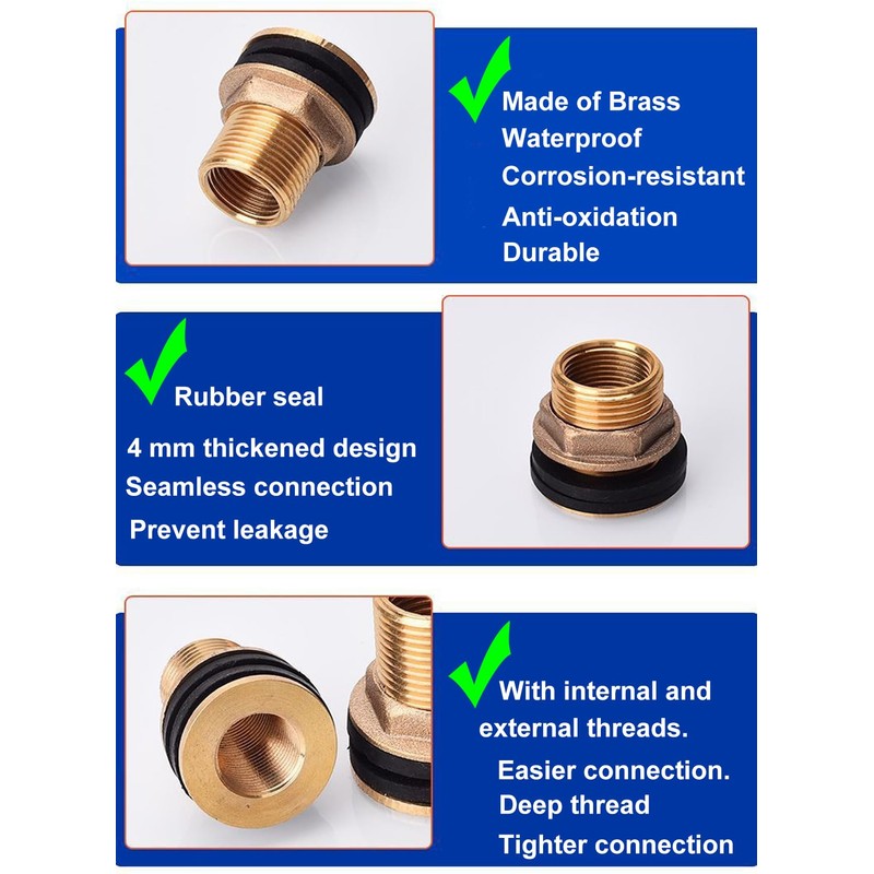 The water butt connector is made of strong and durable brass. It is heat-resistant, cold-resistant, corrosion-resistant and rust-resistant. It is suitable for indoor and outdoor use.