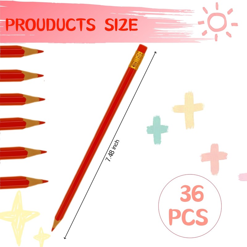LCPQMZGH 36 Pcs Erasable Checking Pencils, Pre-Sharpened, for Marking, Coloring, Tests, Grading, Office, School (Red)