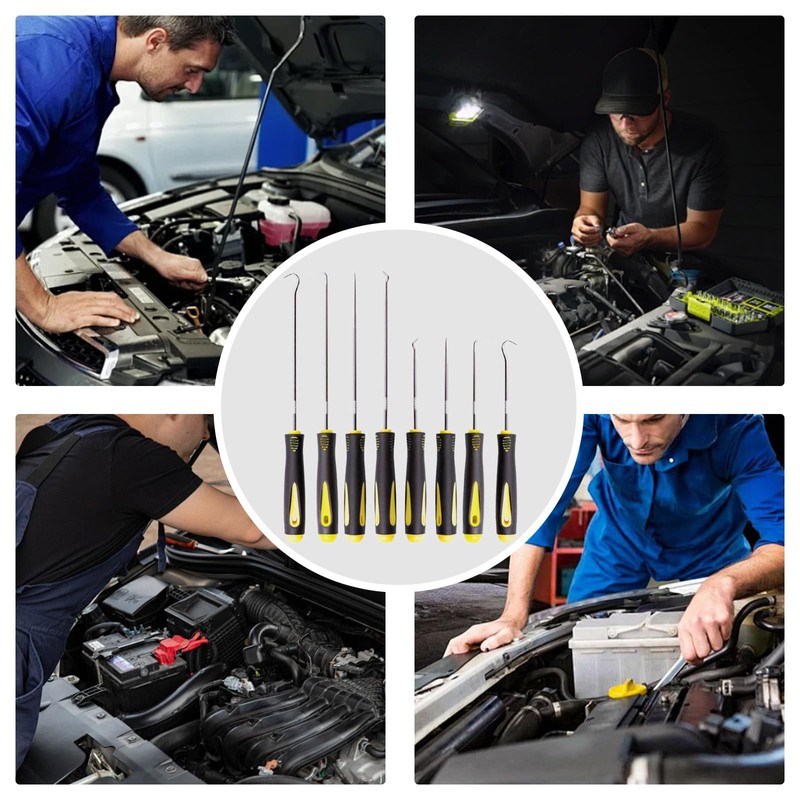 lcyen 8 Piece Hook and Pick Set, Essential Tool Hook Removal Kit for Mechanics, Long and Short Reach, Pick Set for Automotive Work and O-Rings, Gaskets and More