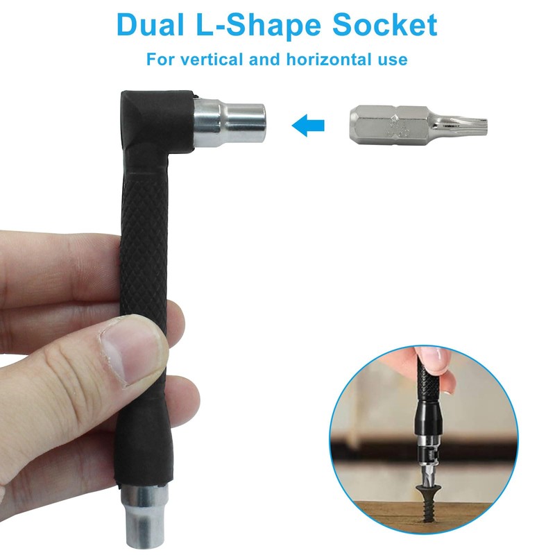 LDEXIN 1/4 Inch Hex Shank Screwdriver Bit Set, 11Pcs Right Angle Screwdriver and Bits, Double Head Hex Socket Wrench for Tight Space, with Phillips/Slotted/Torx Bits, Impact Driver Bit Set