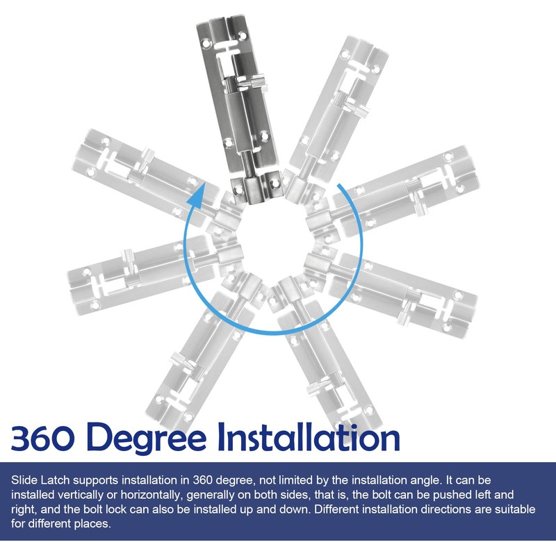 - Multi-Directional Installation --- 4 inch Slide lock supports installation in multiple directions, either horizontally to the left or right, or vertically upwards or downwards. Different installation directions are suitable for different places. The beautiful shape of slide lock is suitable for various styles of decoration.
