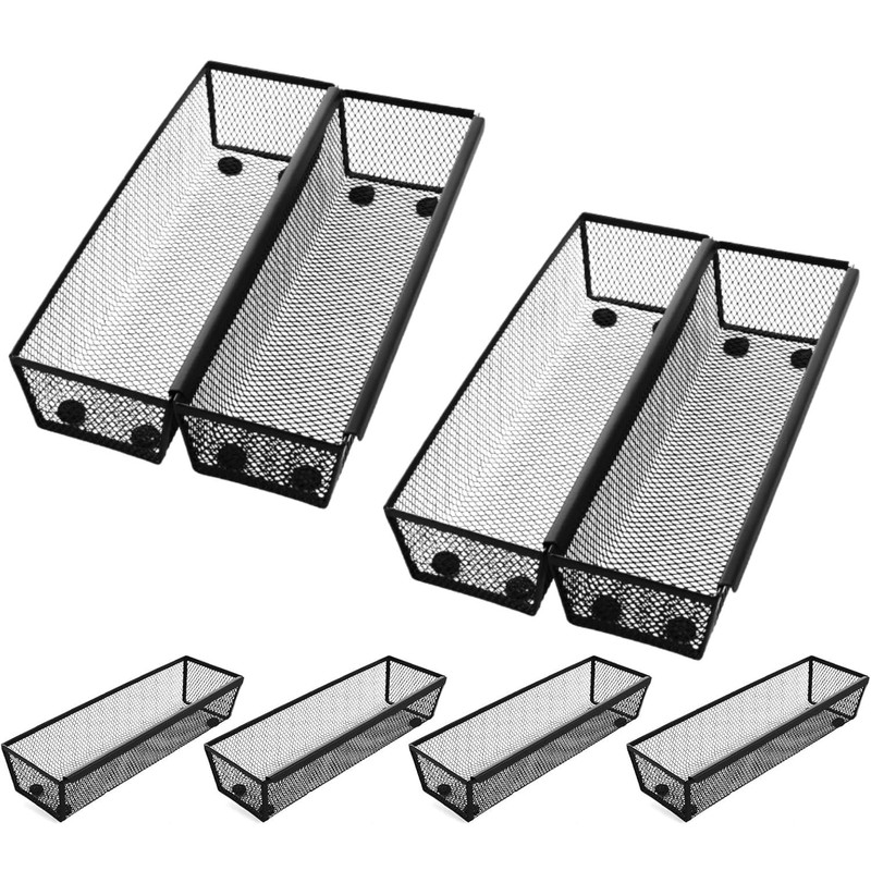 LDHHYH 8Pcs Cutlery Kitchen Drawer Organiser, Mesh Cutlery Drawer Organiser, Grid Utensil Drawer Organizer with Non-Slip Feet for Kitchen, Office, Bathroom, Pantry, Black