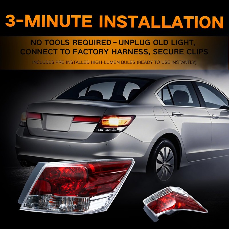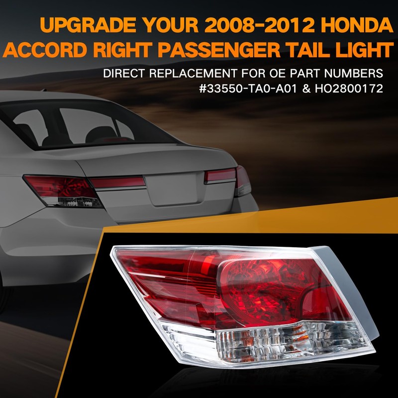 LDNMILES Tail Light Compatible with 2008-2012 Honda Accord,Direct Fit 33500-TA0-A01&HO2801172 Weatherproof Design with Pre-Installed Bulbs (Passenger Right Side)