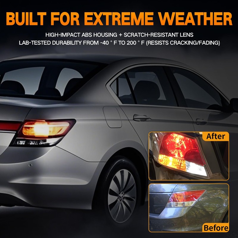 - Weatherproof Durability-Constructed with high-impact-resistant ABS plastic and resistant lens, tested to withstand extreme temperatures (-40°F to 200°F)