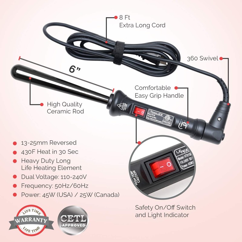 - Maintains 430F Even Heat While Curling / Heavy Duty, Long Life Heating Element