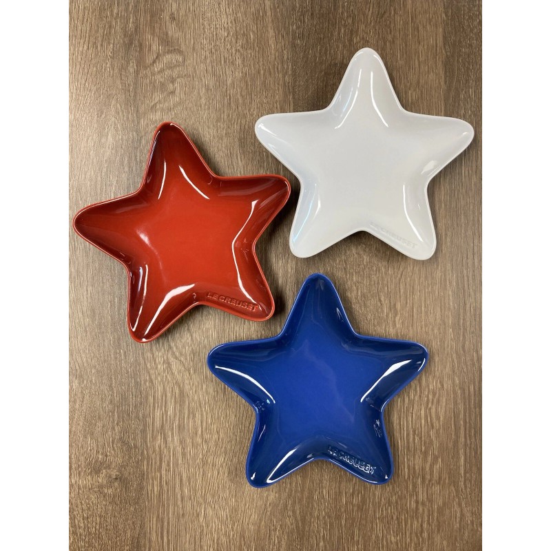Le Creuset Set of 3 LE CREUSET Cerise White & Cobalt Star 8" Snack Appetizer ...