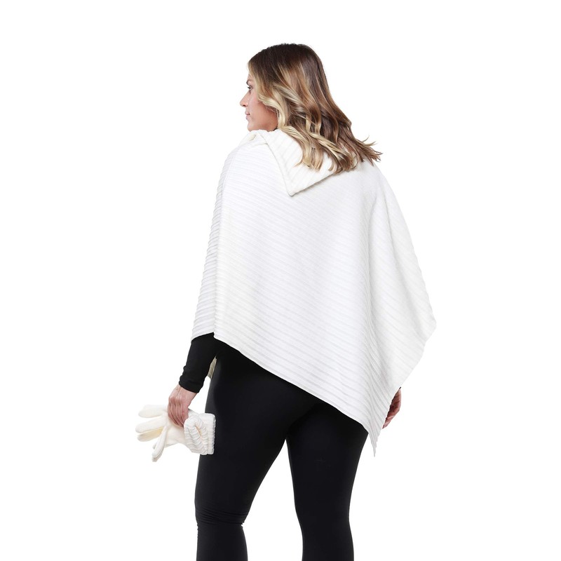 Le Moda Women’s Shawl Collar Pleated Fleece Poncho with Matching Gloves | One Size Fits All (ONE SIZE, WINTER WHITE)