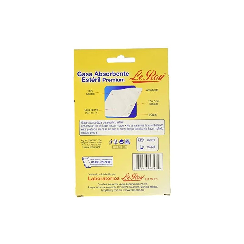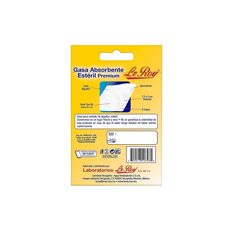 Nombre: Le Roy premium gasa estéril 7.5x5cm con 10 piezas