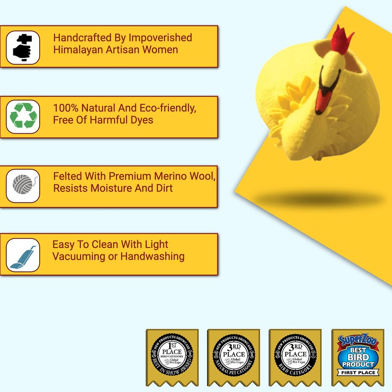 Le Sharma Deluxe Felted Cat Cave, 100% Natural, Eco-Friendly and Handmade Wool Cat Bed - Large Cozy and Comfortable Felt Cat Caves Houses for Indoor Cats/Kittens and Small Dogs - Swan
