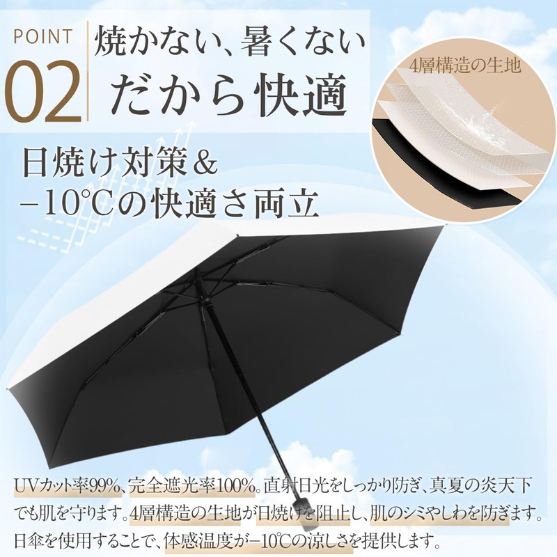 LEA RON One-Touch Automatic Open and Close Folding Umbrella, Lightweight, Approx. 7.4 oz (210 g), Button Type, Fully Blackout, Sun Protection, 4 Layer Structure, For Rain or Shine, Women’s, champagne