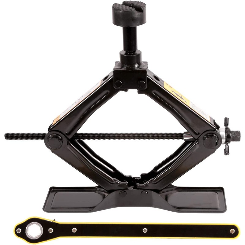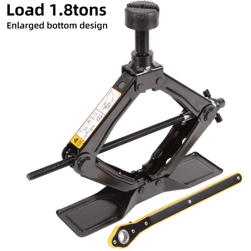 LEAD BRAND Scissor Jack is a Fast and Labor-Saving Design, Load 1.8 tons(3968lbs), Maximum Height is 16.54 inches. The Bottom is Enlarged, The top Steel Column can be Disassembled