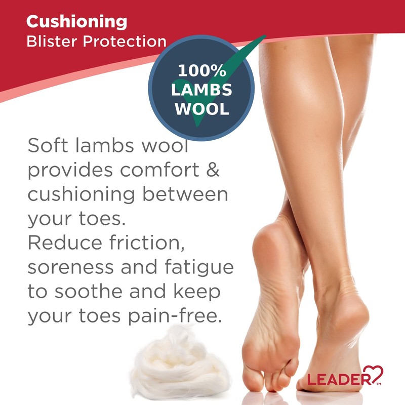 Leader LEADER 100% Lambs Wool Padding, Provides Cushioning Comfort and Pain Relief Between Toes, 3/8 oz, 3 Pack