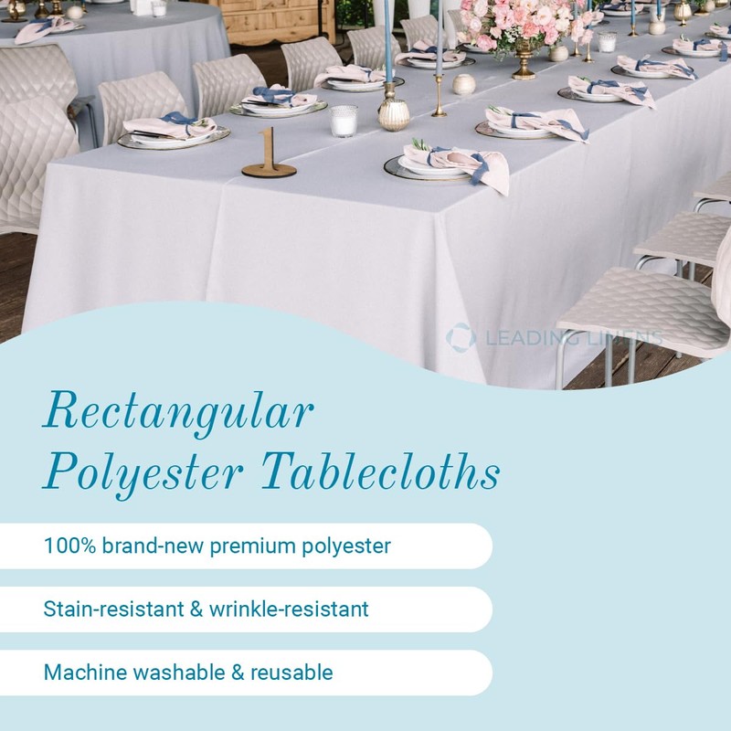 Leading Linens 1 Pack 70 x 90 Inch Rectangle White Polyester Tablecloth, Table Cover, Stain and Wrinkle Resistant, Washable for Dining Table, Wedding Reception, Banquet, Party