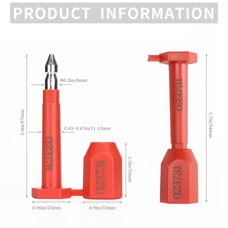 LeadSeals 50PCS Long Bolt Seals High Security Shipping Container Seals with Print Progressive Numbering Tamper Proof Seals for Cargo Containers, Trucks, Trailers ISO 17712 Certified (Red)