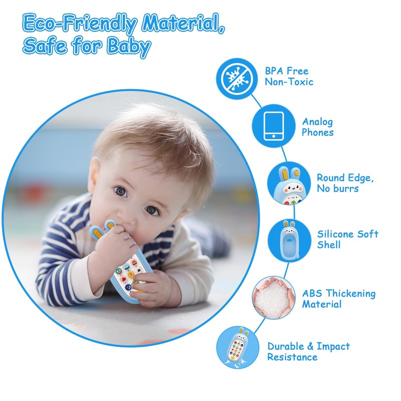 - 【Sicheres Spielzeugtelefon】 Die Spielzeughülle für Babytelefone besteht aus ungiftigen und verschleißfesten Silikon- und Kunststoffmaterialien. Der Beißkamm ist abnehmbar und wird in Wasser mit hoher Temperatur gekocht. Sicher zu berühren und zu beißen, ungiftig, harmlos und nicht reizend, sodass die Verwendung für Ihre Kinder sicher ist. (Paket enthält keine Batterie)
