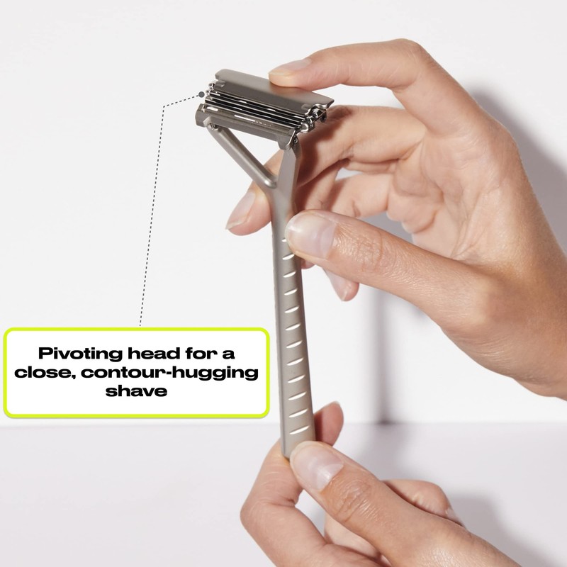 - Adaptive Design: Achieve a contour hugging shave with the Leaf Razor’s pivoting head. Extra pressure is not needed, the weight of the Leaf Razor does the work for you