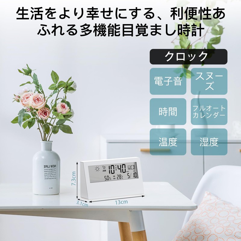 Leafutt Clock, Table Clock, Alarm Clock, Digital Calendar, Snooze, Date, Humidity, Temperature, Day Display, Japanese Instruction Manual Included, Gift