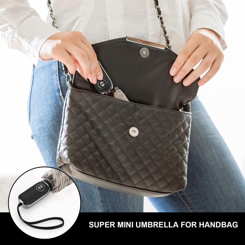 • Unique Flat Handle Design: This small umbrella is designed with a flat handle and a thickness of just 0.98 inches. Its lightweight of only 10.6oz makes it easy to carry in a small bag or even a pocket