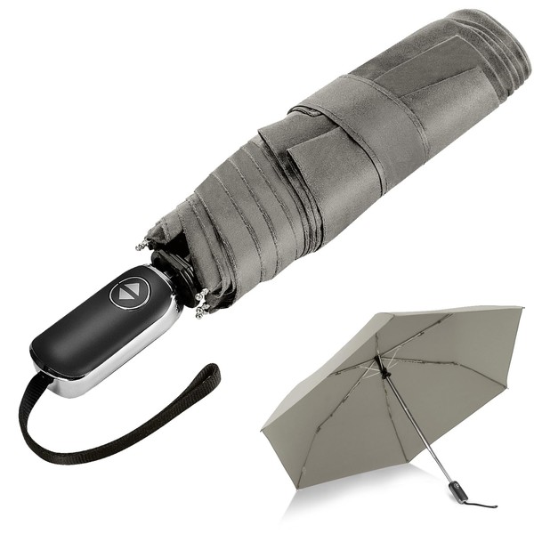 LEAGERA Automatic Umbrella -Collapsible Pocket Flat Umbrella for Travel - Compact Mini Small Ultralight&Portable Umbrellas for Backpack,Gray