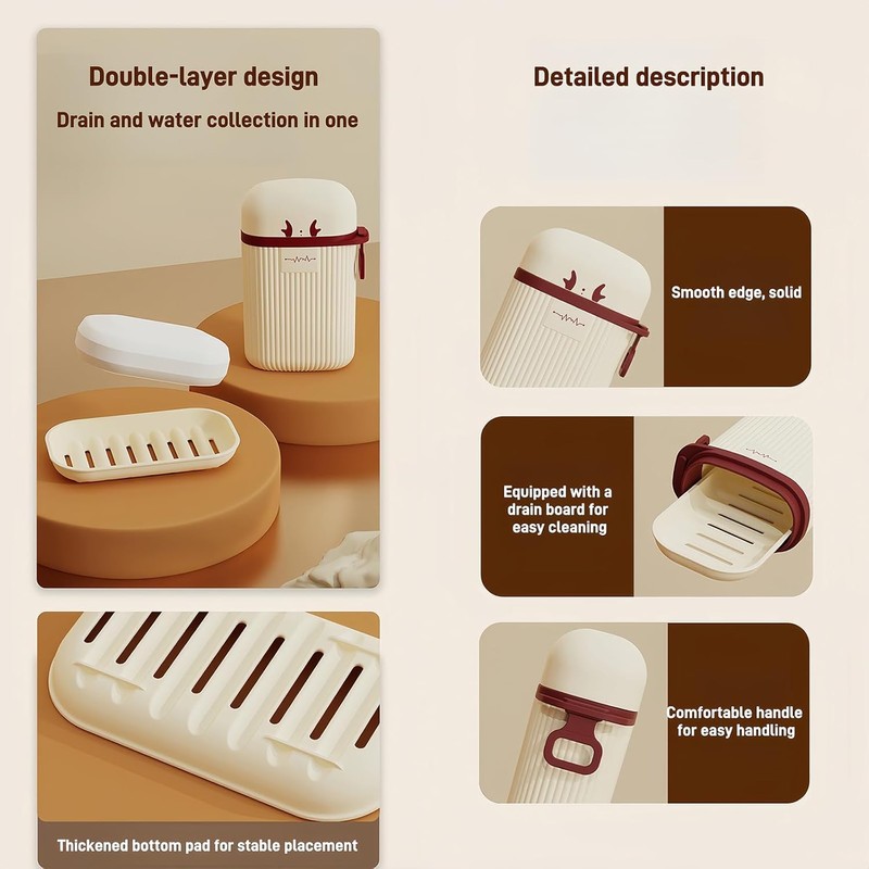 - Portable Bar Soap Case: A travel soap box is essential for keeping your soap secure and your luggage clean while on the go. It features a sleek, elegant case with a tight-fitting lid that prevents leakage, and a snap closure that stops the box from opening accidentally.