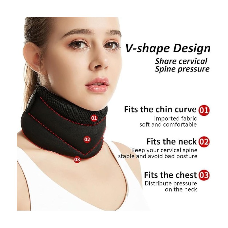- 【Ergonomic & Comfortable Design】: Engineered with an adaptive V-shaped chin contour, this neck support brace ensures even force distribution while accommodating different face shapes, neck lengths, and shoulder sizes. Its slim yet supportive structure allows natural breathing and movement without bulkiness.