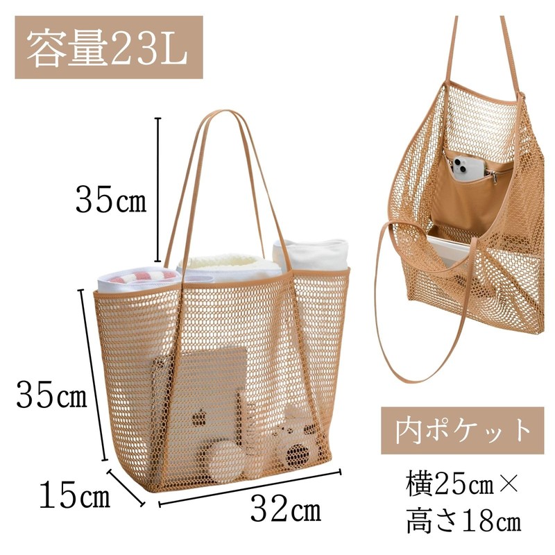 Leap Raupe Mesh Bag, Sandbox Set, Bag, Beach Bag, Pool Bag, Adult, Bath Bag, Laundry Bag, Spa Bag, Spa Bag, Mesh Spa Bag, Sauna Bag, Mesh Tote, Quick Drying, Large Capacity, Beige, beige