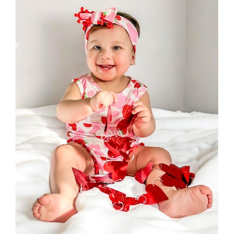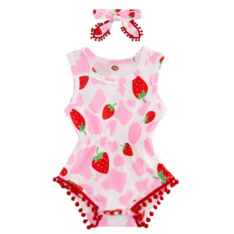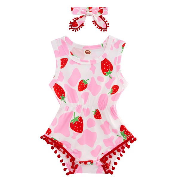 Leapparel Baby Girl Strawberry Clothes Toddler Playsuit Pink and White Infant Outfits Sleeveless Baby Jumpsuits with Cute Headband Cotton Harmless 6-12 Months Rompers