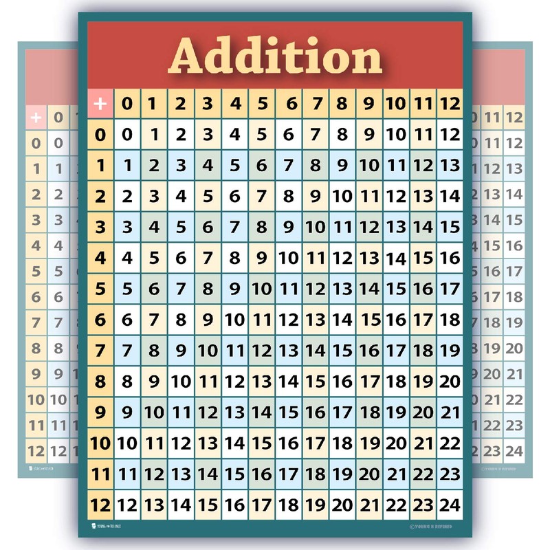 Learning Addition Poster Laminated Math Education Table Chart for School Kids by Young N' Refined. 15x20