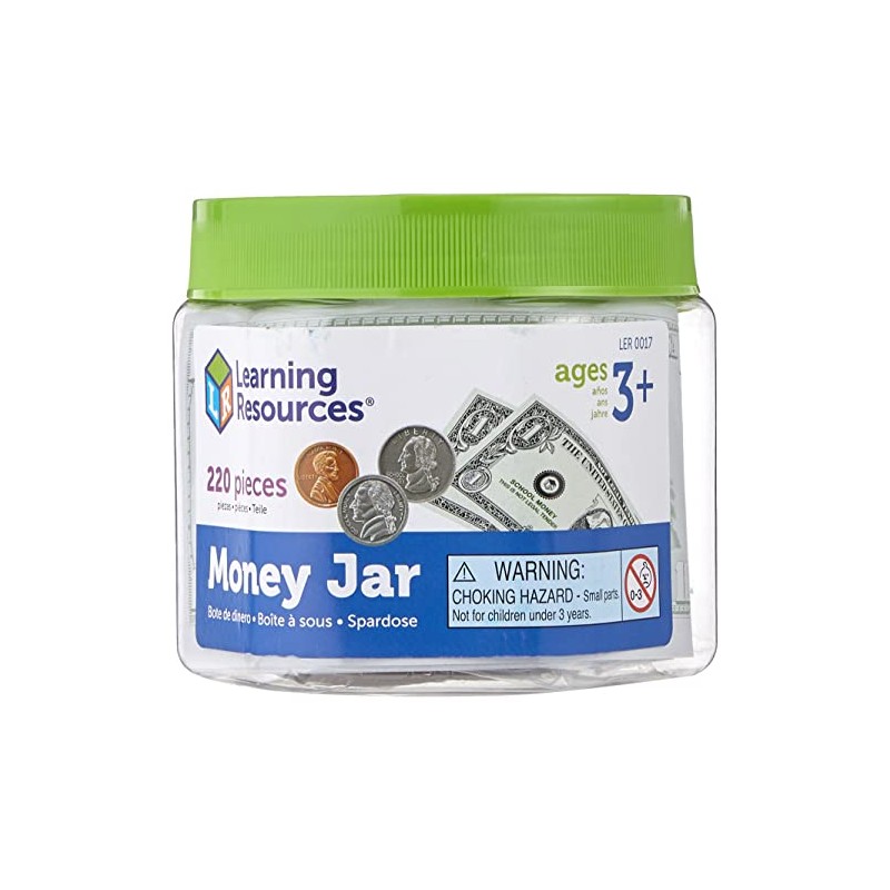 Learning Resources Money Jar, Play Money, Play Money for Kids, Counting, Bills and Coins, Homeschool, Math, Pretend Money, Ages 3+