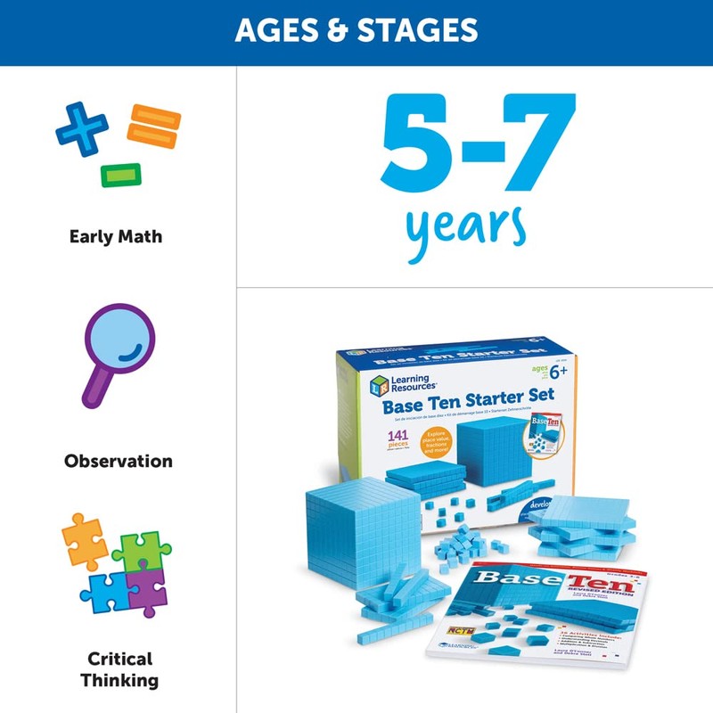 Learning Resources Plastic Base Ten Starter Kit - 141 Pieces, Ages 6+ Early Math, Counting, Math Games for Kids, Teacher and Classroom Supplies