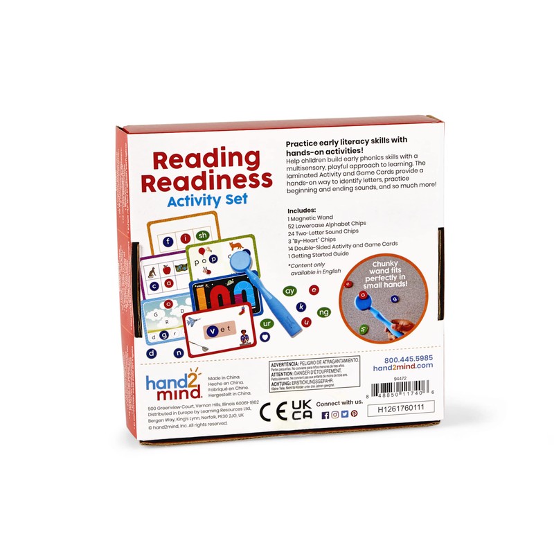 - Includes: 1 magnetic wand, 52 round lowercase letter game discs, 24 oval 2-letter sound game discs, 3 round "memory" playing discs, 14 double-sided task and playing cards and 1 game suggestions