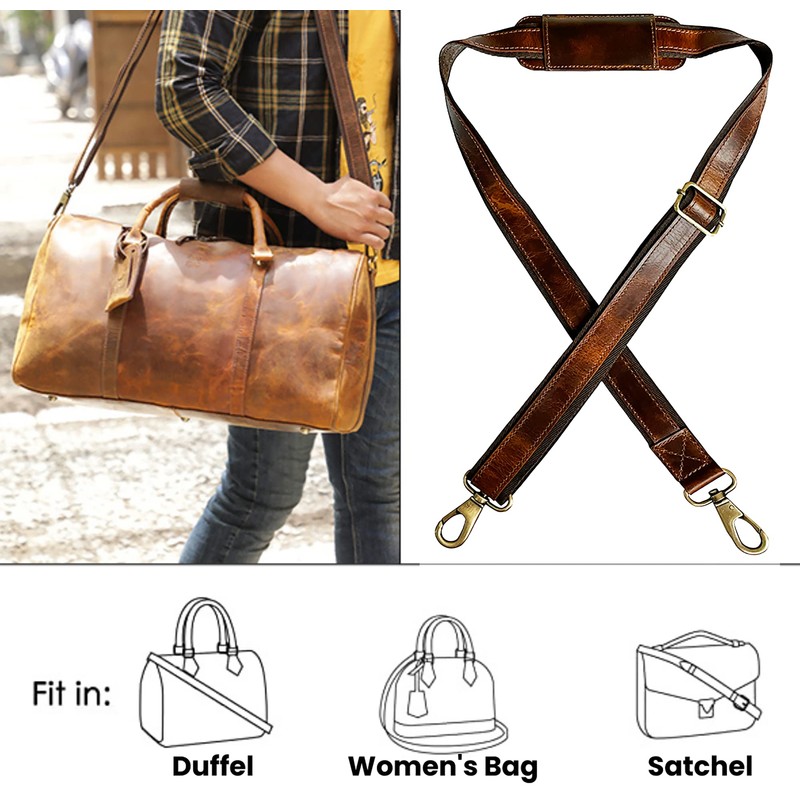 • ✅ UNIVERSAL FIT – For both men and women; Use this multi-purpose strap as a replacement for your broken one, or to bring some class to a bag that needs a fresh look! Great for Duffel Bags, Messenger Bag, Laptop Bag, and Camera bags. Use it as a shoulder or a cross body strap. ADJUSTABLE LENGTHS (has been updated to better suit your needs!) - 43” to 66“