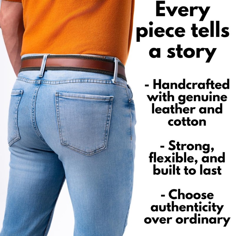 - PREMIUM HANDCRAFTED QUALITY - Made with genuine leather and natural cotton webbing. Each belt is carefully handmade, ensuring durability, flexibility, and a unique artisan finish.