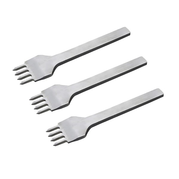 Leather Chisel Set 3 Pieces 4 Prong Steel Leather Craft Row Hole Punch for DIY Leather Craft - 5mm