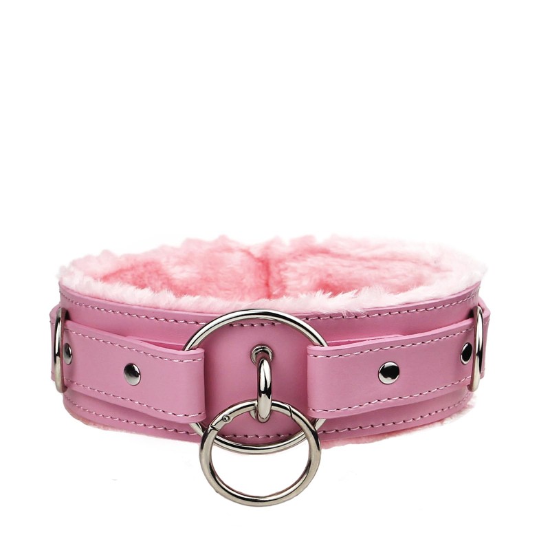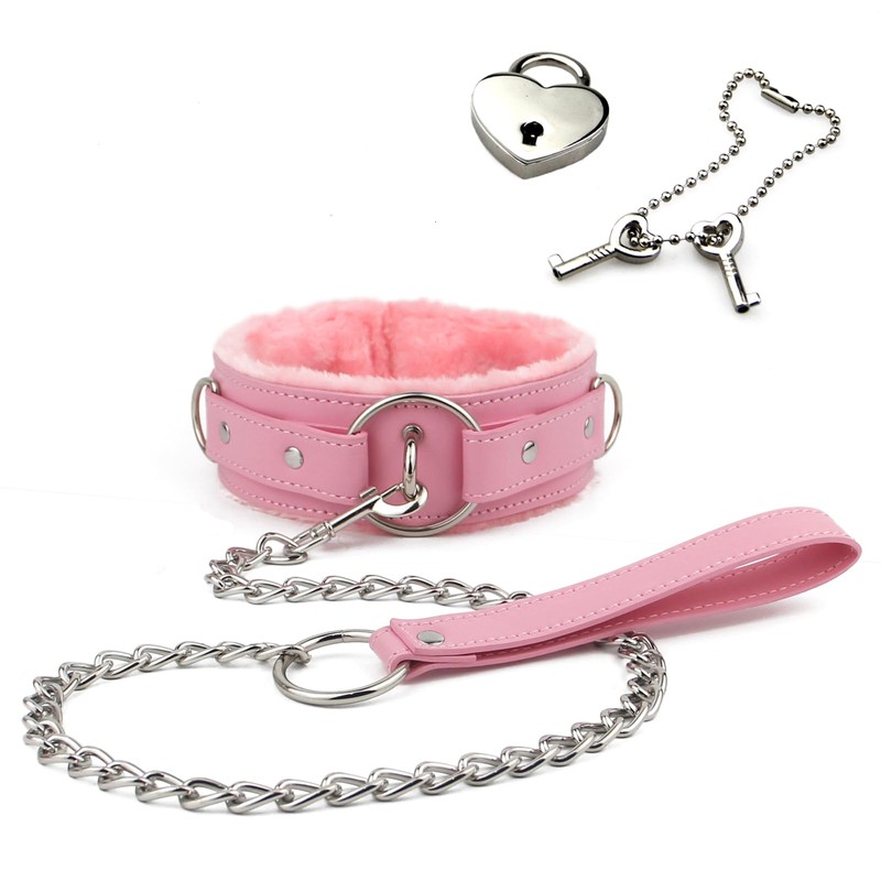 Leather choker Collar with Lock Adjustable Size for women (B1, Pink, Medium)