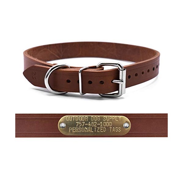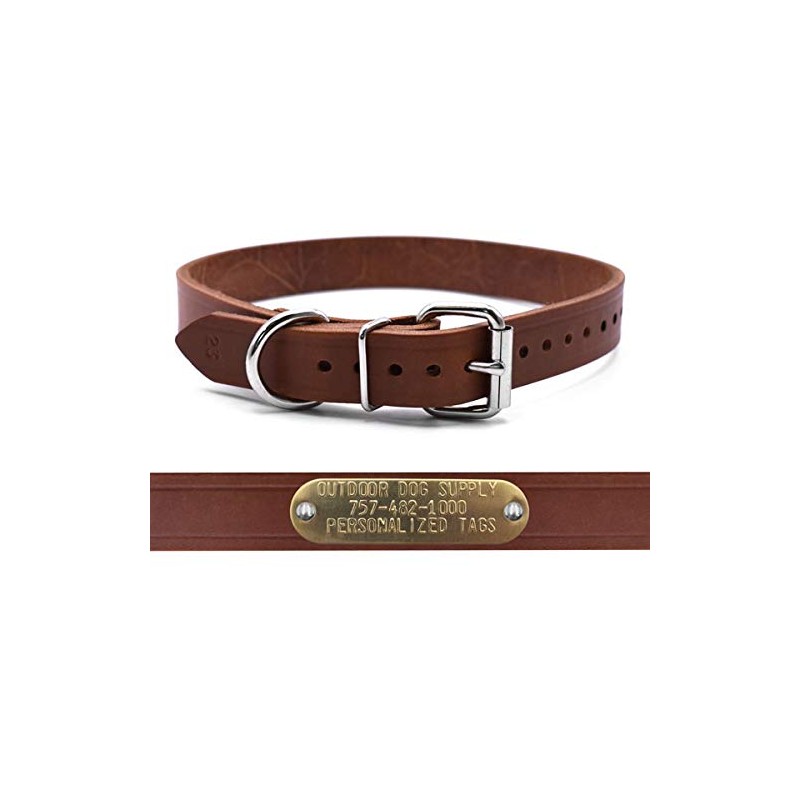 Leather Dog Collar Strap with Custom Brass Name Plate (D Ring, 1" W 19" L)