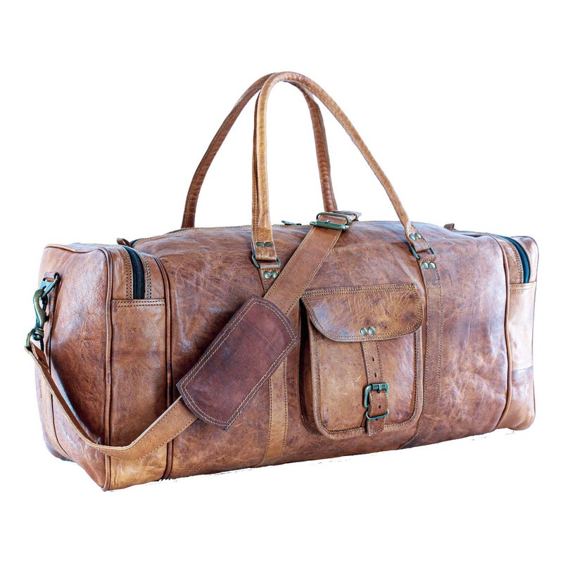 - PERFECT GIFT :With a mutlipurpose use and a classy distressed Vintage inspired look which never goes out of style , This bag is a great gift idea for Fathers Day , Birthdays , Valentines Day , Christmas, Graduation, Back To College Or Any Occasion Which Calls For A Gift . Makes a great gift for professionals, artists , students and all sorts of officials. The bag can be used as a leather duffle bag for men and women sports gym overnight camping travel bag. gift idea.