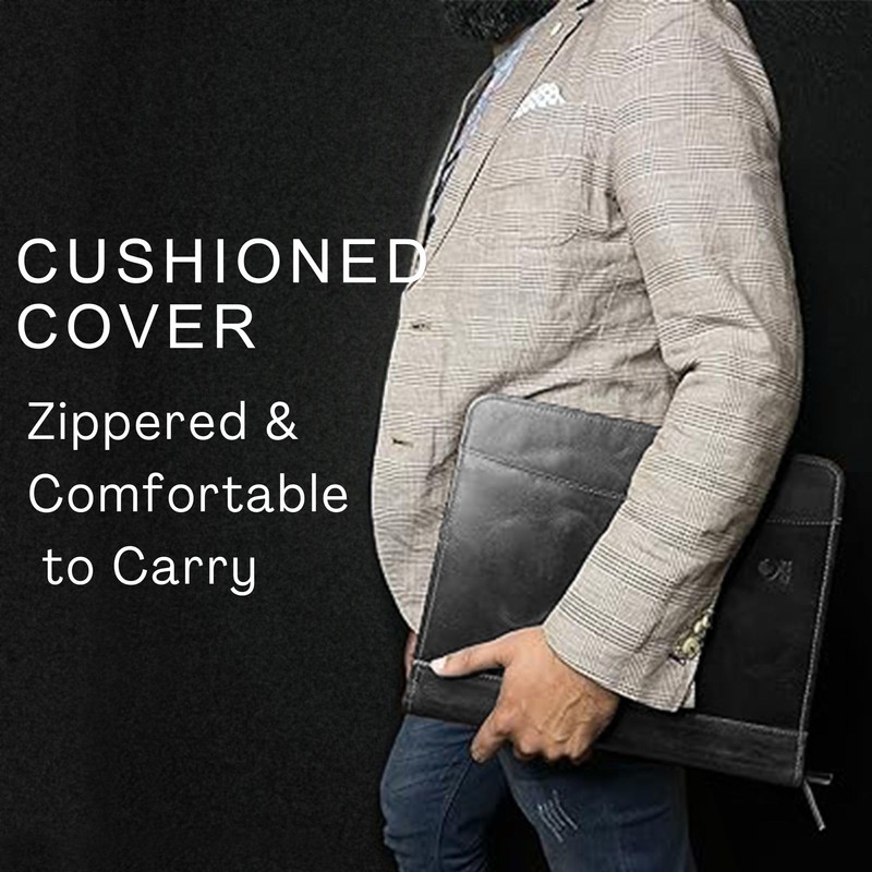 - √ UNIVERSAL IPAD SLEEVE: Keeping Up with the evolving needs of professionals like you. We have designed our leather padfolio to carry your iPad or tablet, (Up to 12.9 Inch) with ease and full protection. Perfect Size: 13.5 x 11.5 Inches.