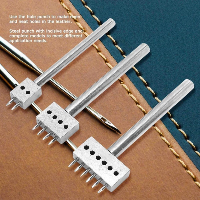 Leather Sewing Tool with Different Prong Heads, 3-Piece Hole Punch Tool Set for DIY Lacing Chisel Leather Crafts (6 mm)
