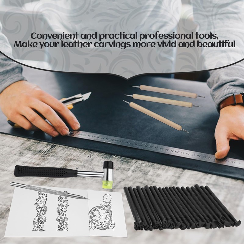 - Leather crafting tool kit: Our carving stamps kit includes 20pcs black leather crafting stamp tools, stainless steel tracing pen, leather swivel knife, rubber hammer, cleaning sponge, 5pcs tracing penn, 10pcs A4 scanning paper and 5pcs tracing paper. Suitable for both beginners and professional craftsmen.