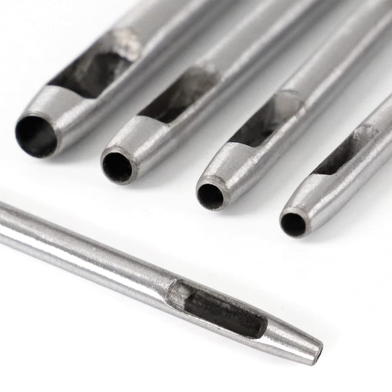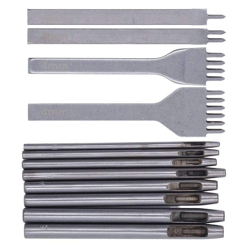 1、Round Punch Material: High carbon steel, claw punch material: white steel; strong and durable. 2、Leather Claw Punch: 1 tooth, 2 tooth, 4 tooth, 6 tooth; Claw hole spacing: 4mm. 3、Round Punch Size: 1.5mm, 2mm, 2.5mm, 3mm, 3.5mm, 4mm, 4.5mm, 6mm. 4、Applicability: These fork punches and round punches are used to make sewing holes and punch holes in leather. 5、Easy To Punch: The rhombus suture chisel has a precise rhombus shape for quick and easy punching.