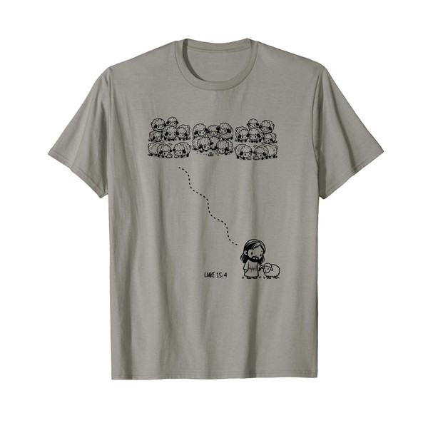 - Faith-Inspired Design – Cartoon-style Jesus walking toward a lone, sheep while 99 sheep watch. Fun, lighthearted, and rooted in Scripture.