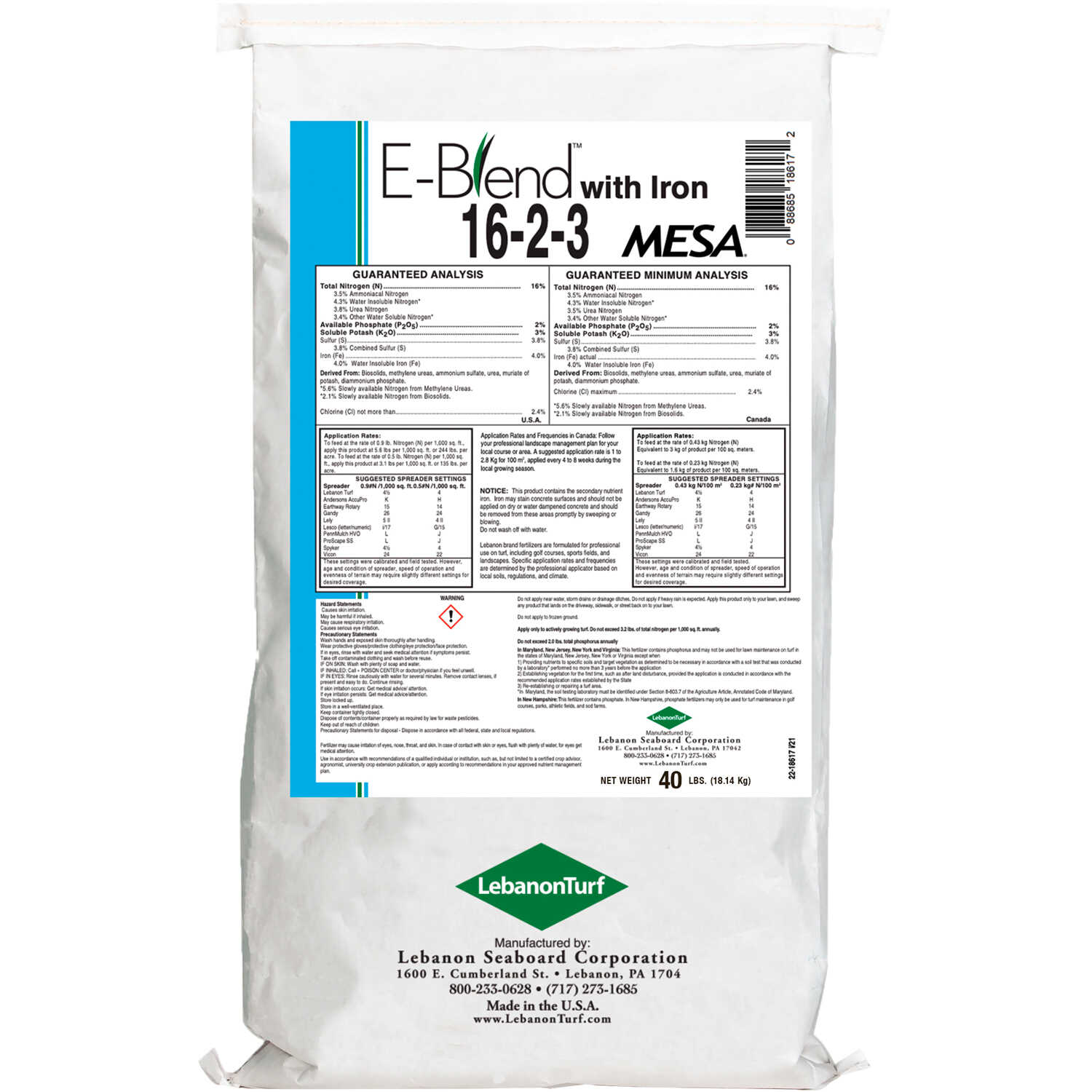 LebanonTurf E-Blend with Iron Fertilizer 16-2-3 40 lb. Bag