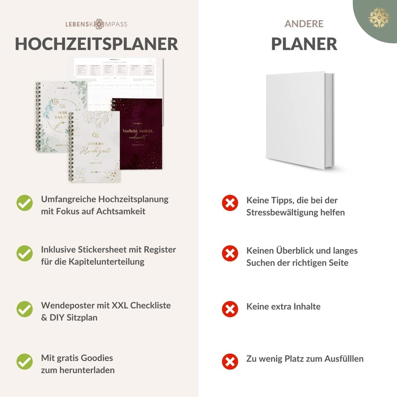 - Mindful wedding preparation: the wedding planner for stress-free organisation and planning of your wedding with focus on mindfulness and loving mindfulness exercises.