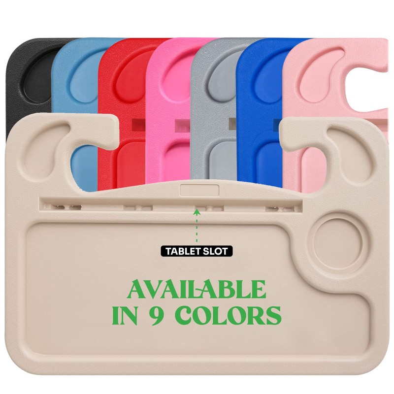 - ▶ Easy and Convenient - This multipurpose Hook-On Steering Wheel Tray is the perfect accessory to have in your car for a quick snack, breakfast, or to create a small office while traveling. The Car Tray is slim, lightweight, and takes up almost no space when not needed. Just store it in the back seat pocket. Easy and convenient to use.